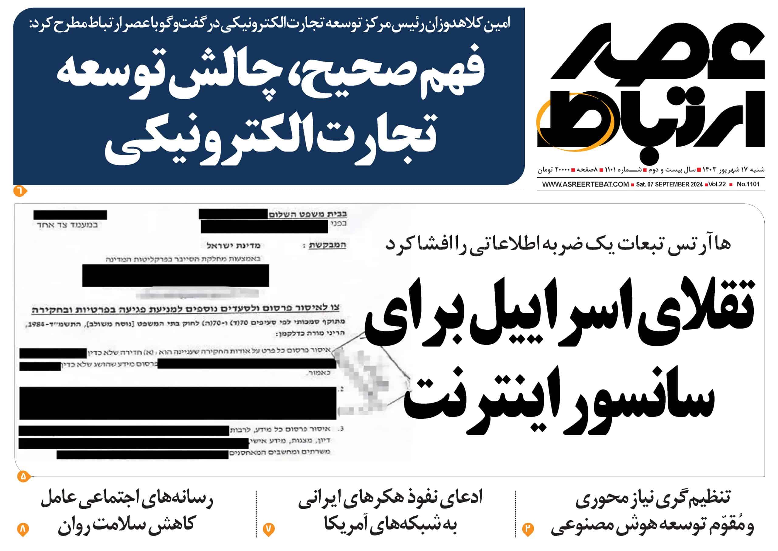 هفته نامه عصر ارتباط شماره 1101